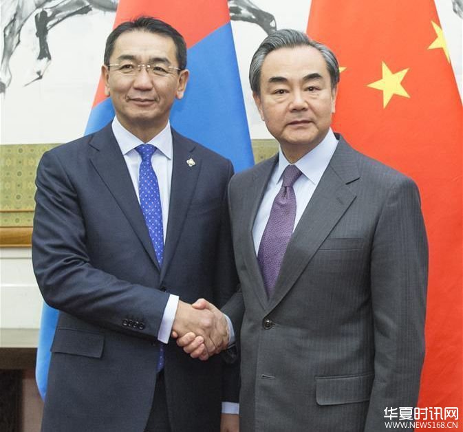 今年2月20日,王毅外长会见来访的时任蒙古国外长蒙赫奥尔吉勒。
