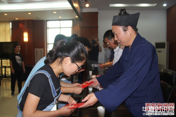 临潼区民政局副调研员周争战主持仪式,并宣读了30位受助学生名单。骊山老母宫金明立道长致辞,金明立道长说:“践行信仰,服务社会是道教的优良传统,也是我们应尽的责任,开展慈善助学活动是和谐社会的需要,是社会文明进步的体现,慈善助学是道教融入社会的桥梁,救助弱势群体,是道教义不容辞的责任和义务。”随后区领导、金明立道长向30位受助学生每人发放了3000元助学金。
