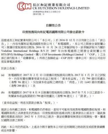 28日晚,李嘉诚旗下的“长江和记实业有限公司”发布了一份自愿性公告:印度税务部门在2017年以来,先后两次向公司追讨税款,直到最近,加上罚款的总费用已经水涨船高至接近400亿港币。