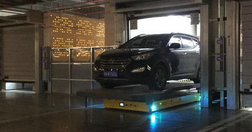 车主取车时,在车库外的触屏输入车牌号码,约两分钟后,机器人便会把车运到车库,还会贴心地确保车头向外,方便车主直接开走。