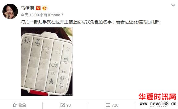 10月18日,马伊琍在微博上晒出一张照片,是陪伴自己的开工箱,马伊琍发文说:“每拍一部助手就在这开工箱上面写我角色的名字,看看它还能陪我拍几部”。