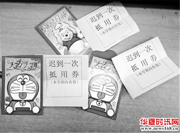针对"学期福利券"的使用率,陈飞也做过统计,在所有的券中,学生使用最多的还是"迟到抵用券"和"忘交作业抵用券"。陈飞表示,在平时的考核中,学生迟到或忘记交作业会扣分,但有的学生是因为时间观念不强或者忘了,没有交作业或者迟到,希望可以给他们一个补救的机会。