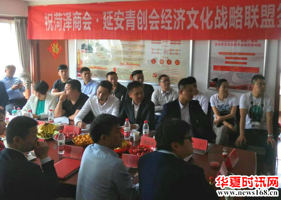 “延安菏泽一家亲”签约战略合作是为陕西省山东菏泽商会、延安陕北青年创业发展促进会两会信息共享、 资源互助、会员一家亲的原则,促进两地文化经济交流,会员产业共融、城市资源共享的宗旨,在双方会长、副会长、秘书长、理事的40余人共同见证下签署了联盟发展协议。双方的主要领导进行了交流发言。大会由陕西好青年 、延安青年创业发展促进会的名誉会长镐天亲情主持。商会、促进会异地“抱团”组建友好商会战略联盟,以创造新的市场竞争优势,并提升自身的竞争力。