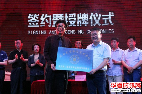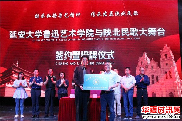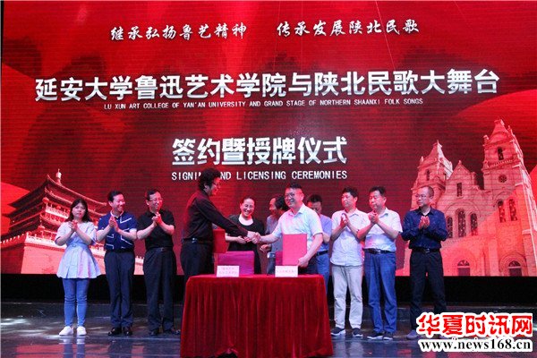 延安大学鲁迅艺术学院院长田大成和陕北民歌大舞台总经理刘德明签约