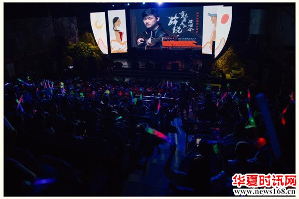 在现场歌迷们的热情掌声和呼喊声中,薛锐先后演唱了《赶集》《牵牛花和红牡丹》《东方红》《山旮旯旯》《人爱人》《谁丧良心谁先死》《酒神曲》《好后生》等十余首原创歌曲,助演嘉宾朝朝也倾情献唱了由薛锐为她量身打造的两首新歌《你》和《朝你来》,空灵、飘逸的歌声,给大家留下了深刻印象。而这些歌曲的词作者、真正幕后的铁粉、薛锐的爱人李若琛也受邀登台发言,她表示当初正是被薛锐对音乐的执着追求所深深打动,选择薛锐和选择支持他的音乐事业,是她这一生最无悔最幸福的选择。这对黄金搭档还表示,今后将再接再厉努力创作出更多更好的作品来回馈支持他们的朋友们。“手拉手只往脸上瞅,千只眼万只眼看不够”“山旮旯旯高来山旮旯旯低,山旮旯旯来了个拦羊的”“牵牛花缠住了红牡丹,红牡丹花儿开得鲜”“一碗碗凉水一呀嘛张张纸,谁要是丧良心谁呀嘛谁先死”“羊肚子手巾头上戴,我们是陕北的好后生”.....,在歌迷们激情的呼应唱和声中,整场演出圆满落下帷幕。