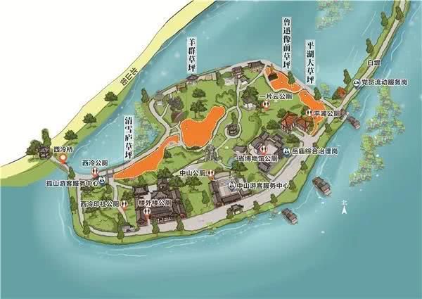 其次,西湖其实是有可供游客踩的草坪的:孤山下有四块挨得很近的大草坪对外开放,加在一起面积足足有12586平方米。