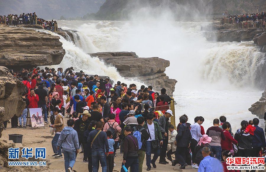 5月3日,游人在位于陕西宜川县的黄河壶口瀑布景区游览。 新华社发(兰华 摄)
