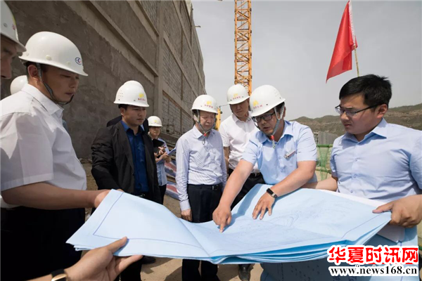 周冰董事长现场听取工作人员汇报项目建设工作。