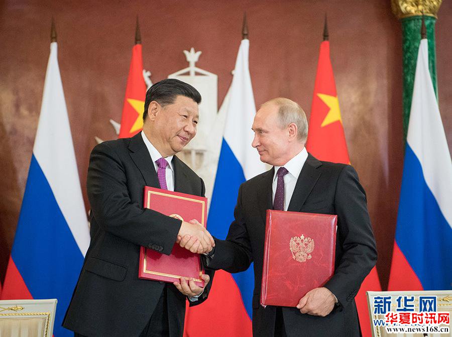 6月5日,国家主席习近平在莫斯科克里姆林宫同俄罗斯总统普京会谈。会谈后,两国元首共同签署《中华人民共和国和俄罗斯联邦关于发展新时代全面战略协作伙伴关系的联合声明》、《中华人民共和国和俄罗斯联邦关于加强当代全球战略稳定的联合声明》,并见证多项双边合作文件的签署。 新华社记者 李学仁 摄