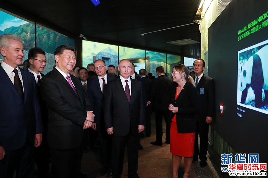 6月5日,国家主席习近平在莫斯科克里姆林宫同俄罗斯总统普京会谈。这是会谈后,两国元首共同出席莫斯科动物园熊猫馆开馆仪式。 新华社记者 丁林 摄