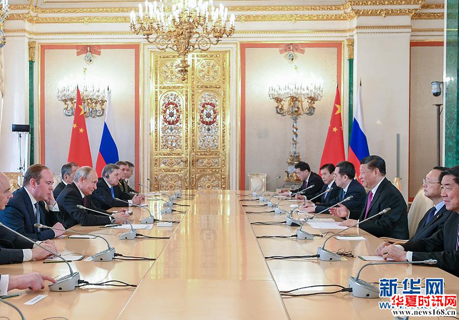 新华社莫斯科6月5日电(记者范伟国 霍小光 刘畅)国家主席习近平5日在莫斯科克里姆林宫同俄罗斯总统普京会谈。两国元首高度评价建交70年来双边关系发展,一致同意秉持睦邻友好、合作共赢理念,发展中俄新时代全面战略协作伙伴关系,将两国关系提升到更高水平,更好惠及两国人民和世界人民。