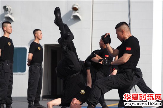 炎炎烈日,特战队员在高温甲板上开展远程狙杀、擒拿格斗等战斗科目训练,磨砺意志品质,练就一剑封喉、一招毙敌的硬功夫。在擒拿格斗现场,特战队员个个虎虎生威,侧踹、顶膝、锁喉,每个动作都精准狠。