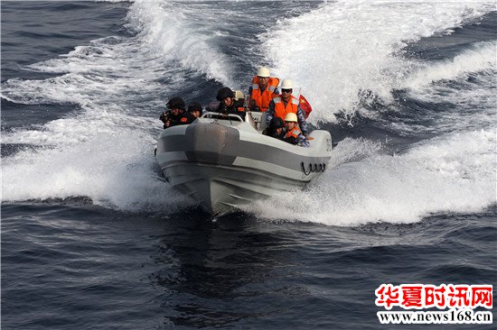 特战队员乘高速小艇前出。