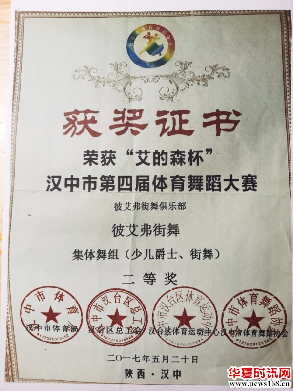 2017年5月以少儿霹雳舞团的队长身份带领小队员们在《艾的森杯汉中市第四届体育舞蹈大赛》中荣获集体舞组二等奖