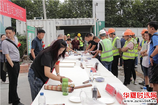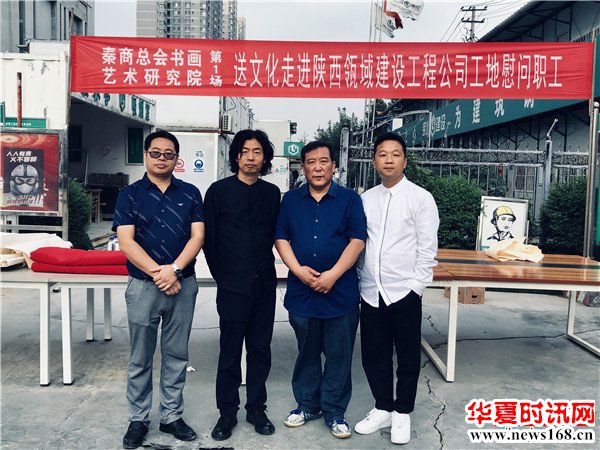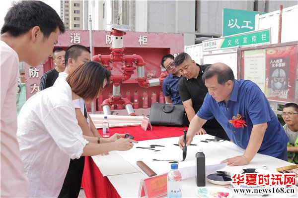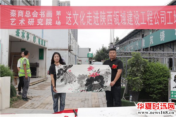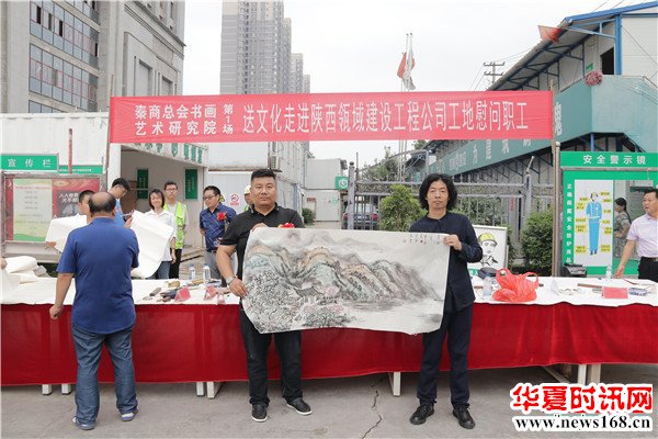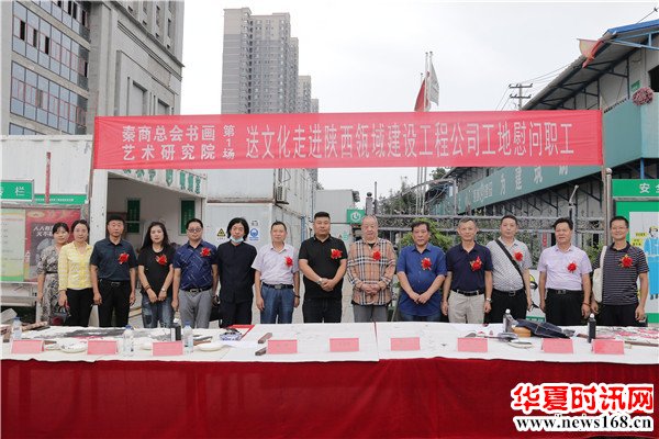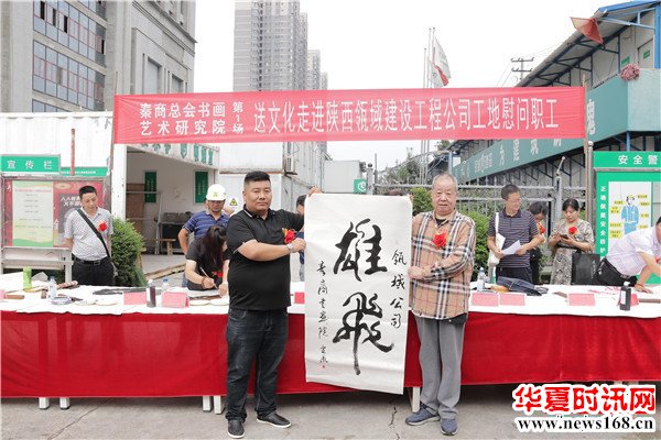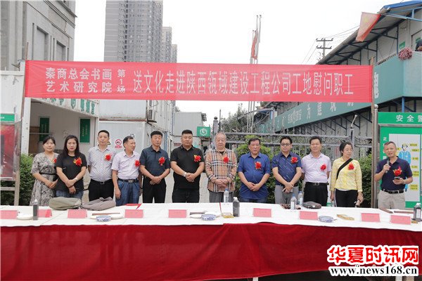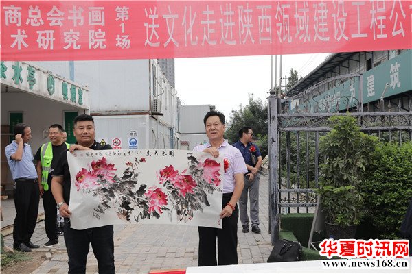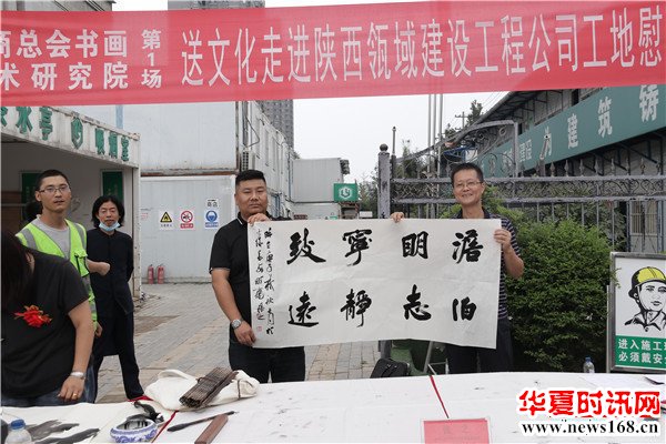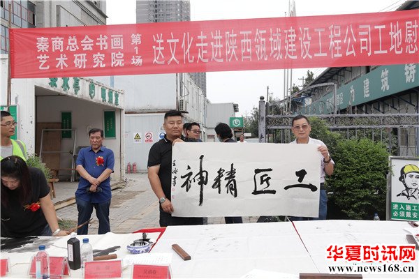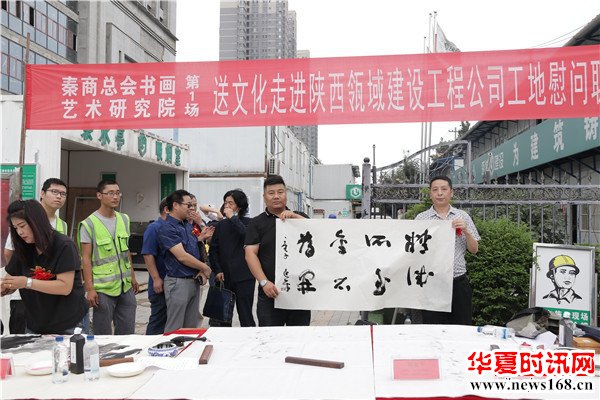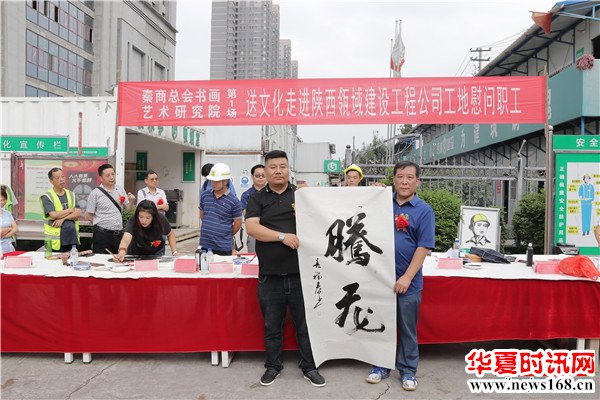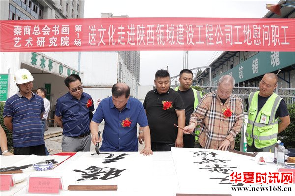 8月22日下午3时,由秦商总会书画艺术研究院主办的“书画名家送文化进企业”活动走进陕西瓴域建设工程有限公司瑞景花园项目工地。在秦商总会会长郑翔玲和执行会长刘阿津的倡导下,秦商总会书画艺术研究院院长、陕西省书法家协会副主席吴福春带队,秦商总会书画艺术研究院的王定成、吴福春、方明、张健、张之、张水鱼、王冰等多位书画名家现场挥毫泼墨,一幅幅饱含祝福的字画,一张张力透纸背的“福”字,让辛勤奋战在一线的工人和农民工兄弟在这个入秋时节感受到来自文化的无穷魅力,本次活动由秦商总会书画艺术研究院副院长方明主持,西部新闻网全程聚焦了本次盛况。