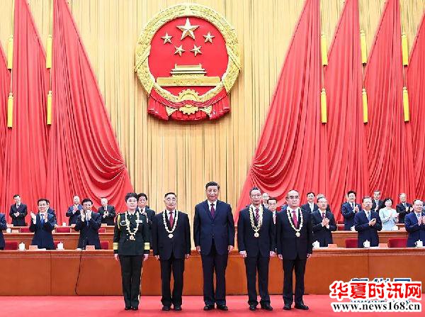 栗战书宣读习近平签署的中华人民共和国主席令。主席令指出,为了隆重表彰在抗击新冠肺炎疫情斗争中作出杰出贡献的功勋模范人物,弘扬他们忠诚、担当、奉献的崇高品质,根据第十三届全国人民代表大会常务委员会第二十一次会议的决定,授予钟南山“共和国勋章”,授予张伯礼、张定宇、陈薇“人民英雄”国家荣誉称号。