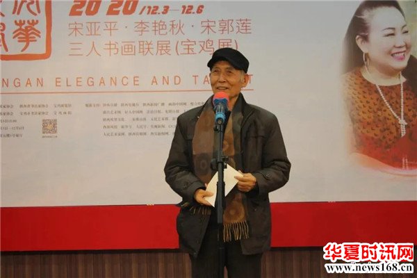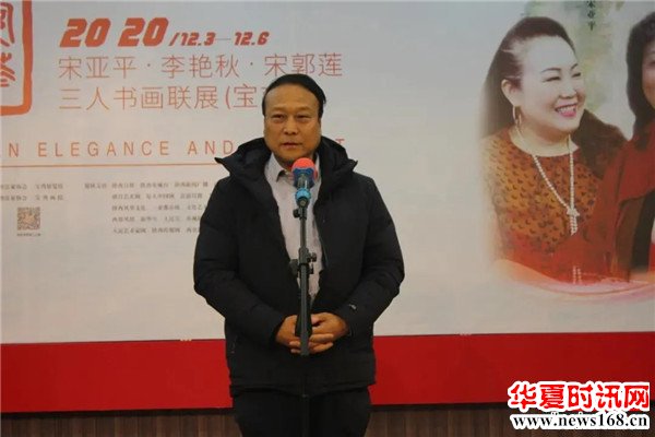“本次‘长安风华 —— 宋亚平·李艳秋·宋郭莲 三人书画联展’在宝鸡举办,为我们宝鸡的书画家、书画爱好者、学者、市民带来了非常精美艺术作品。这几年,宝鸡市委、宝鸡市政府对我们宝鸡文化艺术发展提供了巨大的帮助,也提供了很多重要的平台,宝鸡文化艺术中心、宝鸡大剧院等标志建筑陆续建成;‘宝鸡文化产业发展大会’、‘第九届陕西省艺术节’等大型活动在宝鸡陆续举办,让我们宝鸡文化气息愈来愈厚重。本次“长安风华——宋亚平·李艳秋·宋郭莲三人书画联展”首展选择放在我们宝鸡,我们也很荣幸,本次画展对我们宝鸡文化产业的帮助是巨大的。对于我们艺术家、艺术爱好者们,就应与省上的书画大家、书画艺术家多交流,多学习,彼此才能有更长足的进步。”