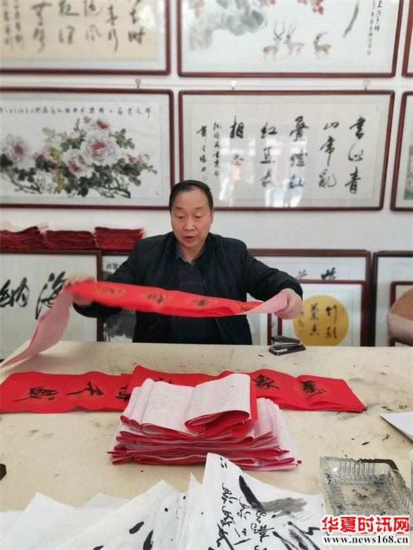 近期,陕西省颜体闻书画家协会就近居住的书画家自觉协会,为丰庆公园扶贫村、游园群众写春联600余幅,各种“福”字700多个。这些书画家和工作人员有陈鼎金、肖崇仁、杨金良、朱思明、杨民社、杨胜咸、焦群堆、谭鹏飞、王文同、贺世才、杨安云、候志刚、王晓英、杜强国等。(张栢溪 协会专业摄影 田设利)