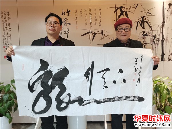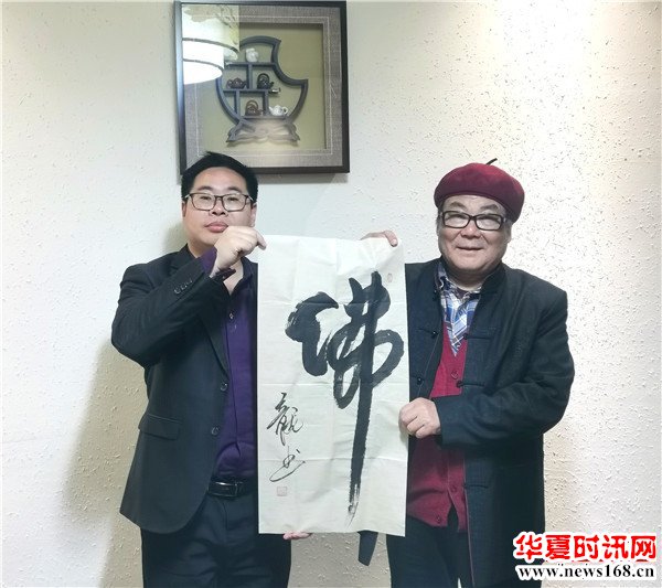 西部新闻网总编辑张龙为刘学典赠送书法《佛》