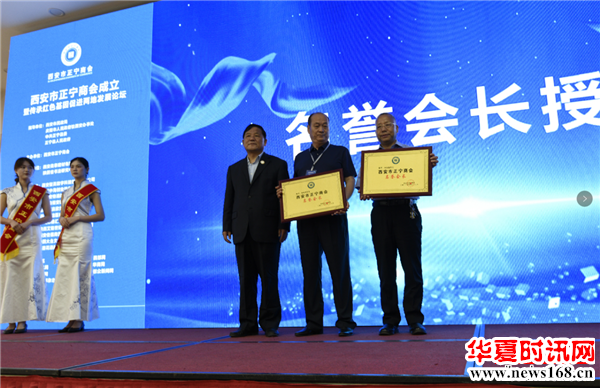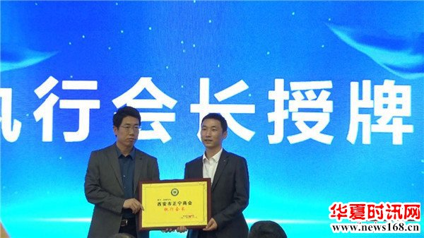 大会第九项:西安市正宁商会名誉会长高战存为商会常务副会长和副会长授牌