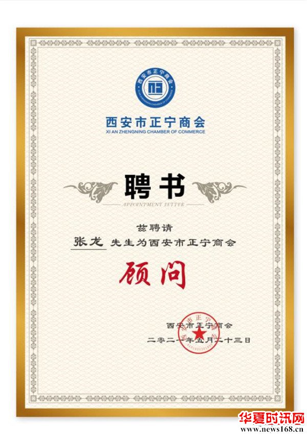 西部新闻网总编辑、陕西龙创文化传媒有限公司董事长张龙荣膺西安市正宁商会顾问