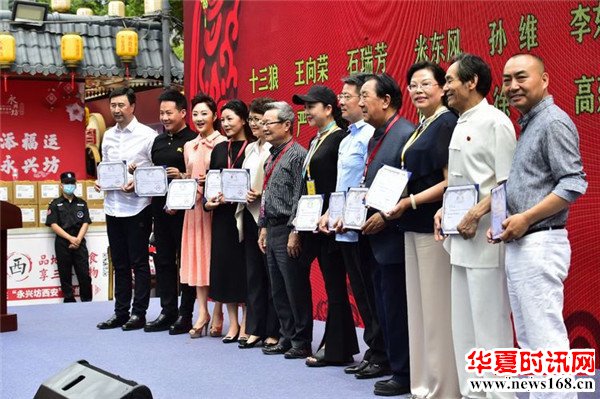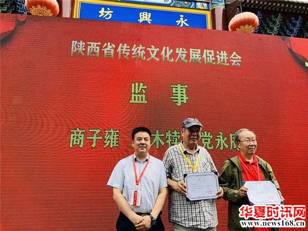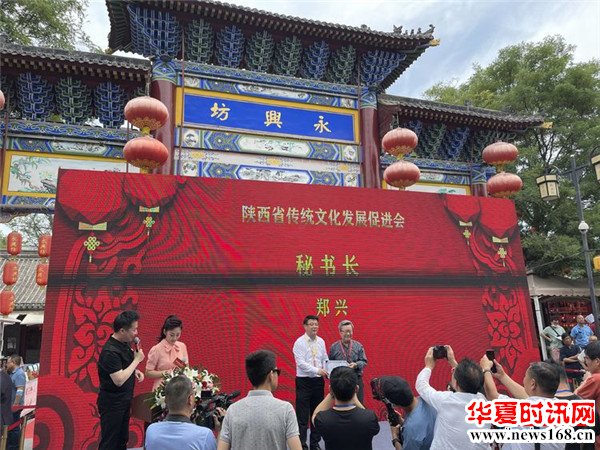 陕西省传统文化发展促进会会长 陈爱美为西安永兴坊颁发“传统文化传承基地”牌匾