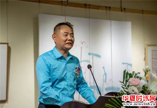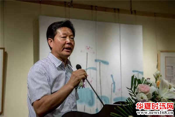 陕西省画廊行业协会书记王建国宣布本次书画展览正式启动