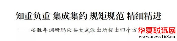安胜年在调研中,从“站位定位、空间利用、守纪执法、基础业务”四个方面,对大武派出所提出了“知重负重、集成集约、规矩规范、精细精进”的具体要求,并表态将会同县局,进一步加大对大武所样板打造的支持。对此,陪同调研的州局领导、在场的玛沁县公安局领导和大武所同志一致认可。