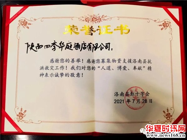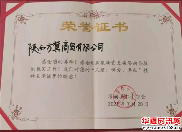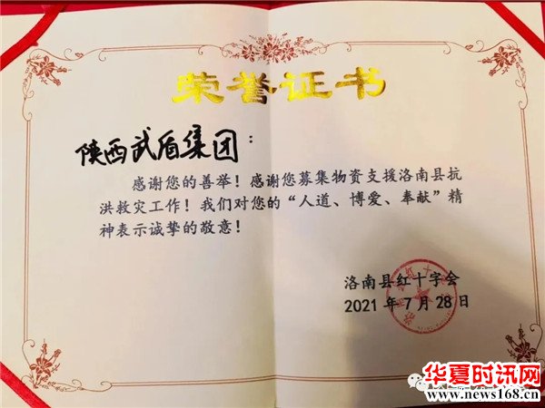 2021年7月28日,陕西好人、慈善家彭亭彬先生亲自带队率陕西武盾集团、西安四季华庭酒店向洛南县红十字会捐赠了方便面、矿泉水、面粉、卫生纸、牙刷、香皂等价值35745元的救灾物资,为当地受灾群众渡过难关奉献爱心、贡献力量。西部新闻网重磅聚焦本次爱心捐助。