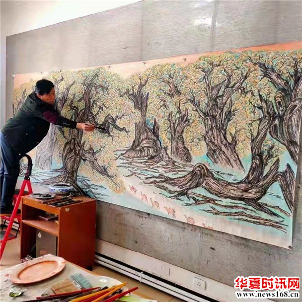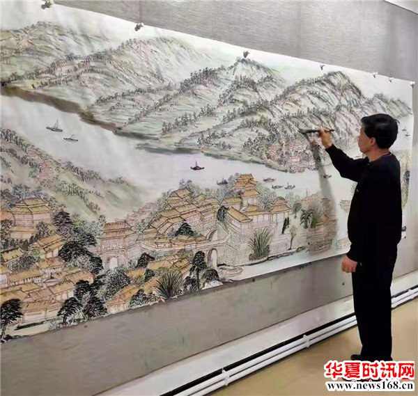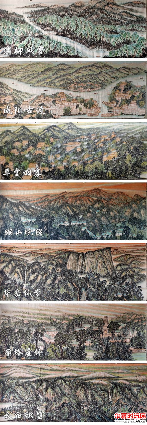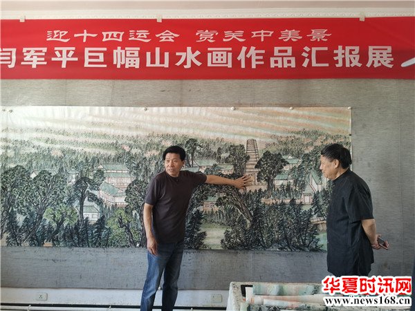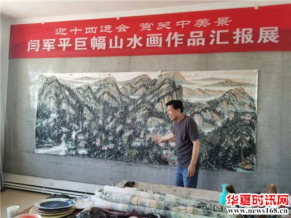 闫军平说:“作为一个西安人,怎样能更好地宣传十四运会,宣传我们的城市,我就想能不能把长安八景画出来,我查阅了大量资料,对长安八景实地考察和体验,用丈二尺寸的图绘制了巨幅山水画。全运会马上就要开幕,让外地的朋友和运动员了解一下关中地区和长安八景。”