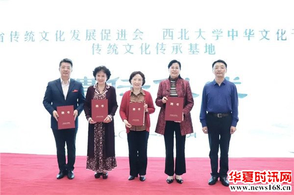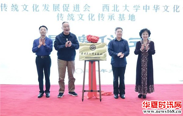 陕西省人大常委会原副主任邓理,西北大学党委副书记、校长郭立宏,党委副书记、中华文化干部学院院长赵作纽,陕西省传统文化发展促进会会长、陕西广播电视台资深节目主持人陈爱美共同为“传统文化传承基地”揭牌
