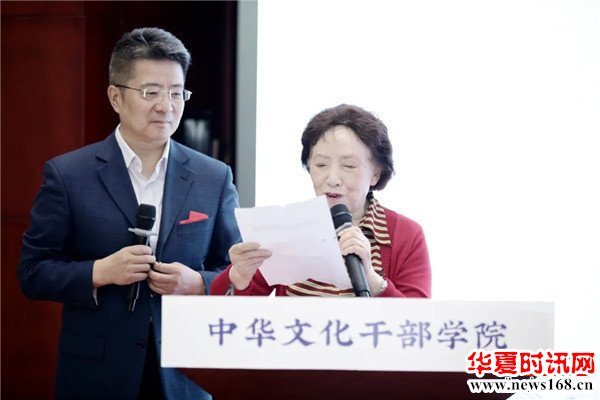 中国著名女高音歌唱家、中宣部命名表彰的“时代楷模”、陕西省传统文化发展促进会终身名誉监事长 贠恩凤宣读陕西省传统文化发展促进会“关于成立传统文化传承基地的决定”文件
