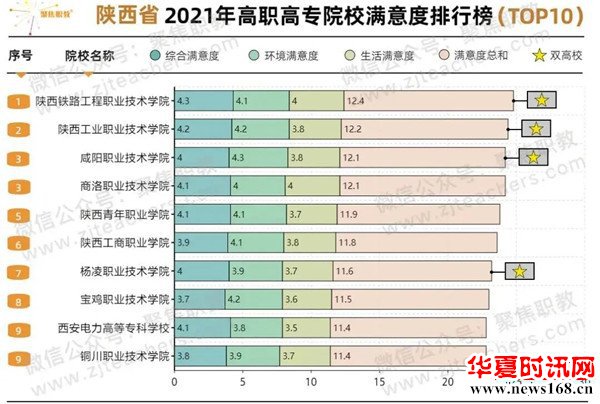 据聚焦职教消息称:从满意度排行榜中可以看到,“双高校”的占比很高,可以说,综合实力越强的学校,学生评价满意度越高。本次陕西上榜的十所高职院校,有省属院校五所,行业院校一所和地市院校四所,十所院校当中,“双高校”占有四所。(张栢溪)