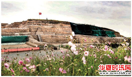 发掘中的石峁遗址金字塔式建筑皇城台(9月12日摄,无人机照片)。新华社记者陶明摄