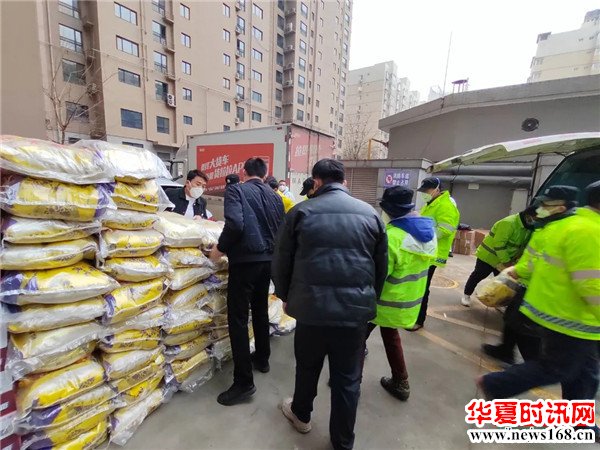 为西安市雁塔区电子城街道糜家桥社区送去300袋大米、300袋面粉、200桶食用油和100箱方便面等爱心物资。