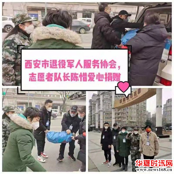 陈惜队长于12月25日带领团队几位志愿者与西安市退役军人服务协会执行会长窦荣杰、副会长孙晓华、主任张书诚抵达碑林区等多个社区防疫一线捐赠防护物资,收到西安市退役军人事务局惠应吉局长亲切慰问,感由心生,表达的内心强烈的军人情怀与全力以赴的付出热情。一天十个小时在线关注群里的诉求信息,迅速回应调配解决,晚间拖着疲惫的回到所在的莲湖区青门小区,看到老人们都很缺乏食物,立刻捐资,委托志愿者欧阳婷及毕双怀购买到蔬菜、馒头、消毒防护物品等分发给小区每家每户;接到紫薇社区李主任(高风险地的绿码区),因老人诸多,食物匮乏而挨饿的电话,迅速感召调配,由志愿者飓风悦野李玉山、张凡捐赠蔬菜送达社区;接到唐延路盛世唐幼儿园老师的求助信息,由于封城时幼儿园老师还在工作,无法及时撤离,被原地隔离在幼儿园,由于时间过去了几天,老师们的生活物资消耗殆尽,她接到求助后马上安排志愿者团队送去老师们所需的生活物资,并亲自去到现场......类似这样的故事,在陈惜队长身上数不胜数。