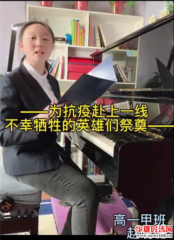 同学们结合在抗击新冠肺炎疫情中令人感动的“逆行英雄”事迹,以乐曲、朗诵等形式,诉说他们的感人故事,表达敬佩之情。
