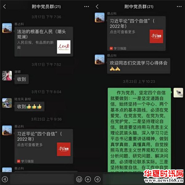 党员同志们在西安音乐学院附中支部书记蔡占科的带领下,通过线上线下结合的方式学习先烈们依靠群众、联系群众、服务群众的优良传统,学习习近平论“四个自信”等,继承革命遗志,发扬党的优良传统,积极投身到教育事业当中。