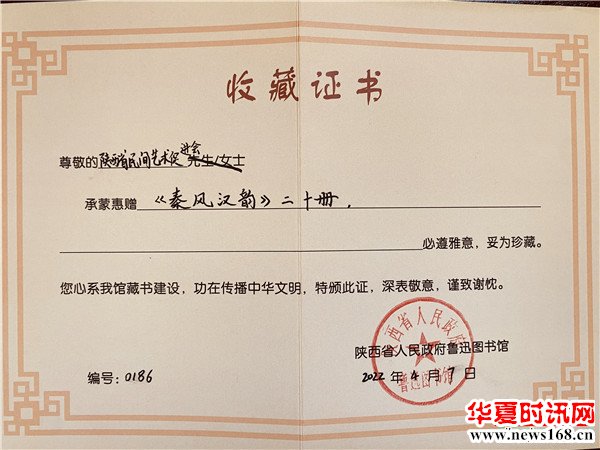 (文/图 陕西省民间艺术促进会 陈宝风)2022年4月7日上午,陕西省民间艺术促进会向陕西省政府鲁迅图书馆捐赠了新出版的《秦风汉韵》——陕西当代艺术名家精品集,受到鲁迅图书馆馆长马建刚先生的热情接待,并颁发了收藏证书,随后邀请大家参观了该图书馆。西部新闻网联合多家媒体重磅聚焦本次活动。