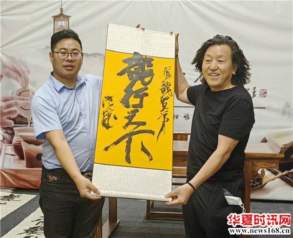 范华院长在金领书画院现场泼墨为陈百忍院长题字《百忍成钢》;同时为西部新闻网总编辑张龙题字《龙行天下》;张龙总编辑现场还为范华先生赠送《龙》字书法作品同时对范院长的莅临带来了精彩的脱口秀表演和即兴文艺表演,受到范华院长的高度好评,大家度过了一个特别难忘的中秋佳节。