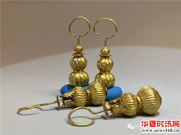金质镂空葫芦型,明代特有的一种耳饰。葫芦多子,象征多子多福吉祥如意。
