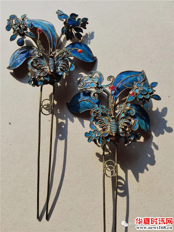 点翠工艺,是一项产生自汉代的中国传统的金银首饰制作工艺。是中国传统的金属工艺和羽毛工艺的完美结合,先用金或镏金的金属做成不同图案的底座,再把翠鸟背部亮丽的蓝色的羽毛仔细地镶嵌在座上,以制成各种首饰器物。