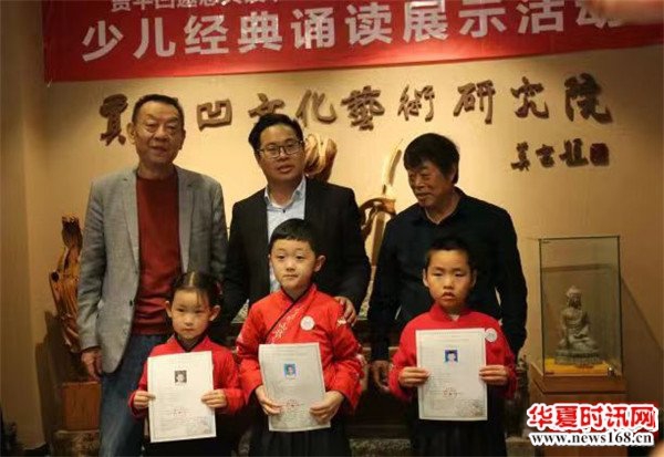 活动现场相关嘉宾还为读书展示活动中优秀小朋友颁发了小学士、小硕士证书合影。活动现场并有家庭亲子展示、成人公益读书群老师及家长们的《周易》读书展示。诗意中国,源远流长,经典的语言,蕴藏着五千年悠久的历史文化;经典的声音,演绎着不朽的风骨铿锵。看,一张张笑靥如花的脸庞,洋溢着孩子们对经典的喜悦;瞧,一个个婀娜灵动的舞姿,演绎着孩子们对经典的敬仰;听,一阵阵声情并茂的朗诵, 传递着孩子们对经典的热情。