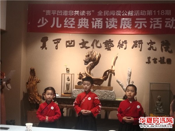 4月29日下午,在第28个世界读书日来临之际,由中国散文学会、陕西关工委、陕西省作家协会、贾平凹文化艺术研究院、陕西省少年儿童文化研究会联合主办,西安汉苑阁国学馆承办的“贾平凹邀您共读书”全民阅读公益活动第118期--少儿经典诵读展示活动在西安酱豆书屋成功举办。西部新闻网联合多家媒体重磅聚焦本次活动。
