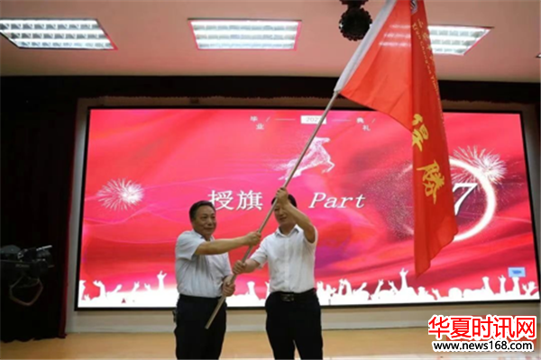 长安一民德育副校长王小柱老师为九年级授出征旗,教务处副主任、九年级年级主任曹德强老师上台接旗。旌旗一开,斗志昂扬。中考舞台,一民学子必将大放光彩!