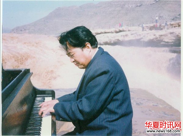 父亲在黄河壶口弹凑钢琴巜保卫黄河》