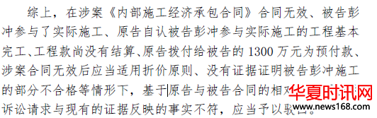 宸鸿公司认为其支付的工程预付款1560万元为钢结构工程的工程款,而非的土方回填工程的预付款,应当依法返还,竟然一直获得一审法院的采信支持。后,金中公司先是认为案涉土方工程系自己独立完成,向实际施工人主张返还预付工程款。这样,彭某独立完成案涉工程施工,却被金中公司起诉追还1300万预付工程款。