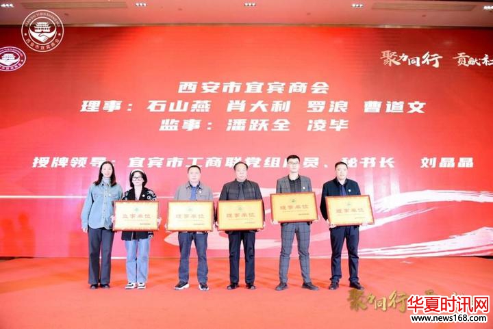 宜宾市工商联党组成员、秘书长刘晶晶为西安市宜宾商会理事石山燕、肖大利、罗浪、曹道文,监事潘跃全、凌毕进行授牌。