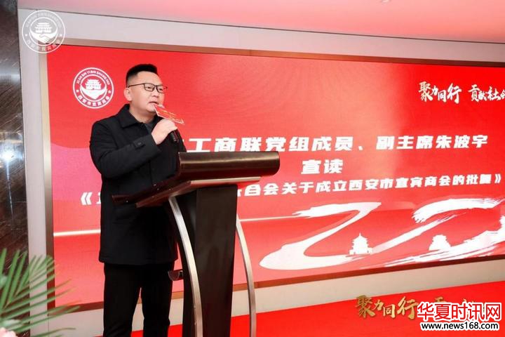 宜宾市工商联党组成员、副主席朱波宇宣读《宜宾市工商业联合会关于成立西安市宜宾商会的批复》。