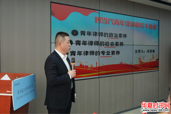 讲座中,冯贵强律师认为青年律师作为法律职业者,需要具备三大素养:政治素养、社会素养和专业素养。首先青年律师应该坚定中国特色社会主义理想信念,坚持中国特色社会主义律师制度的本质属性,拥护党的领导,拥护社会主义制度,自觉维护宪法和法律尊严;其次青年律师作为社会的一员,应当关注社会的发展和进步,具备强烈的社会责任感和公益心。青年律师应该始终把执业为民作为根本宗旨,全心全意为人民群众服务,通过执业活动努力维护人民群众的根本利益,维护公民、法人和其他组织的合法权益。同时,青年律师还应该注重职业道德规范,保护客户合法权益,维护法律尊严;最后青年律师作为法律专业人士,需要具备扎实的法律知识和专业能力,理解法律条文和规则,能够熟练运用法律思维和方法解决问题。青年律师还应该具备人际沟通的能力,能够与当事人、司法机关和其他相关人员建立良好的沟通关系。此外,青年律师还应该热爱律师职业,珍惜律师荣誉,树立正确的执业理念,不断提高专业素质和执业水平。